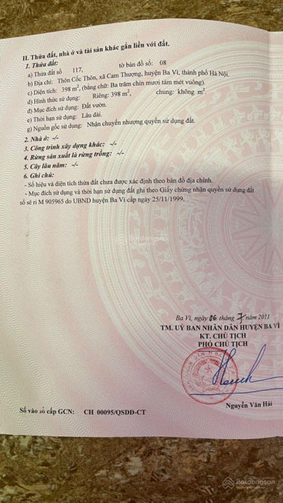 Bán đất sổ đỏ chính chủ 398m² xã Cam Thượng, Ba Vì, Hà Nội 5tr/m².Đường Quốc lộ 32, Xã Cam Thượng, Ba Vì, Hà Nội