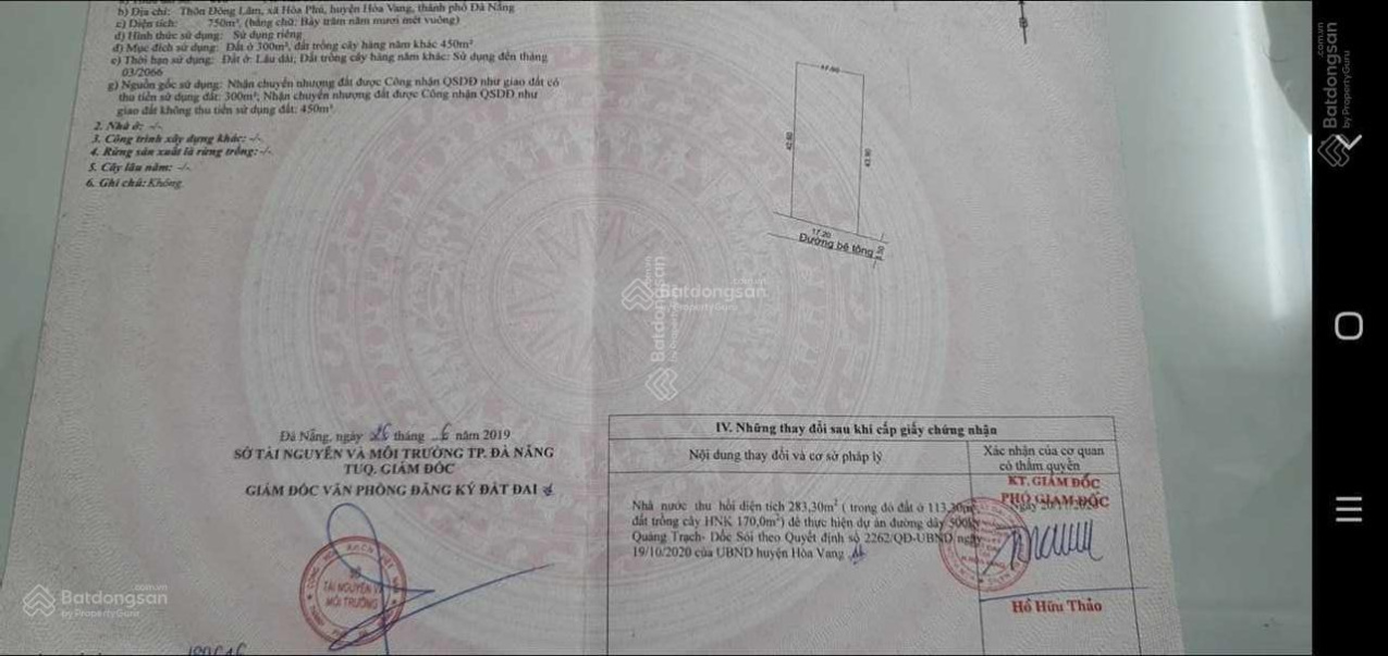 Bán lô đất 1420m², có 600m² đất ở.Đường 14G, Xã Hòa Phú, Hòa Vang, Đà Nẵng