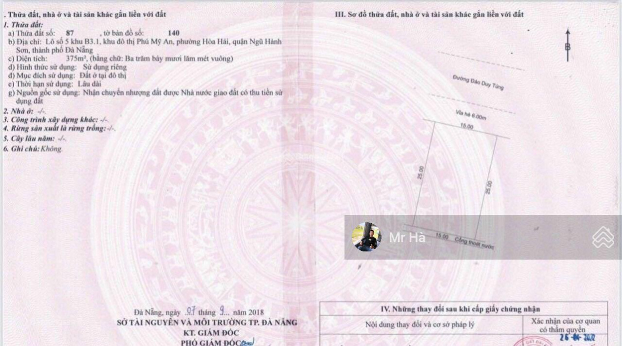 Chủ bán gấp hạ giá sâu.Dự án Phú Mỹ An, Đường Đào Duy Tùng, Phường Hòa Hải, Ngũ Hành Sơn, Đà Nẵng