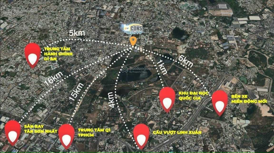 Vị trí dự án: Nằm trên đại lộ Phạm Văn Đồng nối dài, Ngay Làng đại học quốc gia Thủ Đức.Dự án Bcons City, Đường Thống Nhất, Phường Đông Hòa, Dĩ An, Bình Dương