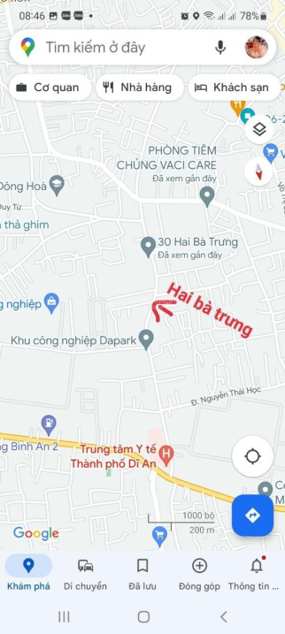 Mặt tiền Hai Bà trưng đất ngang 5.40m.Phố Hai Bà Trưng, Phường Đông Hòa, Dĩ An, Bình Dương